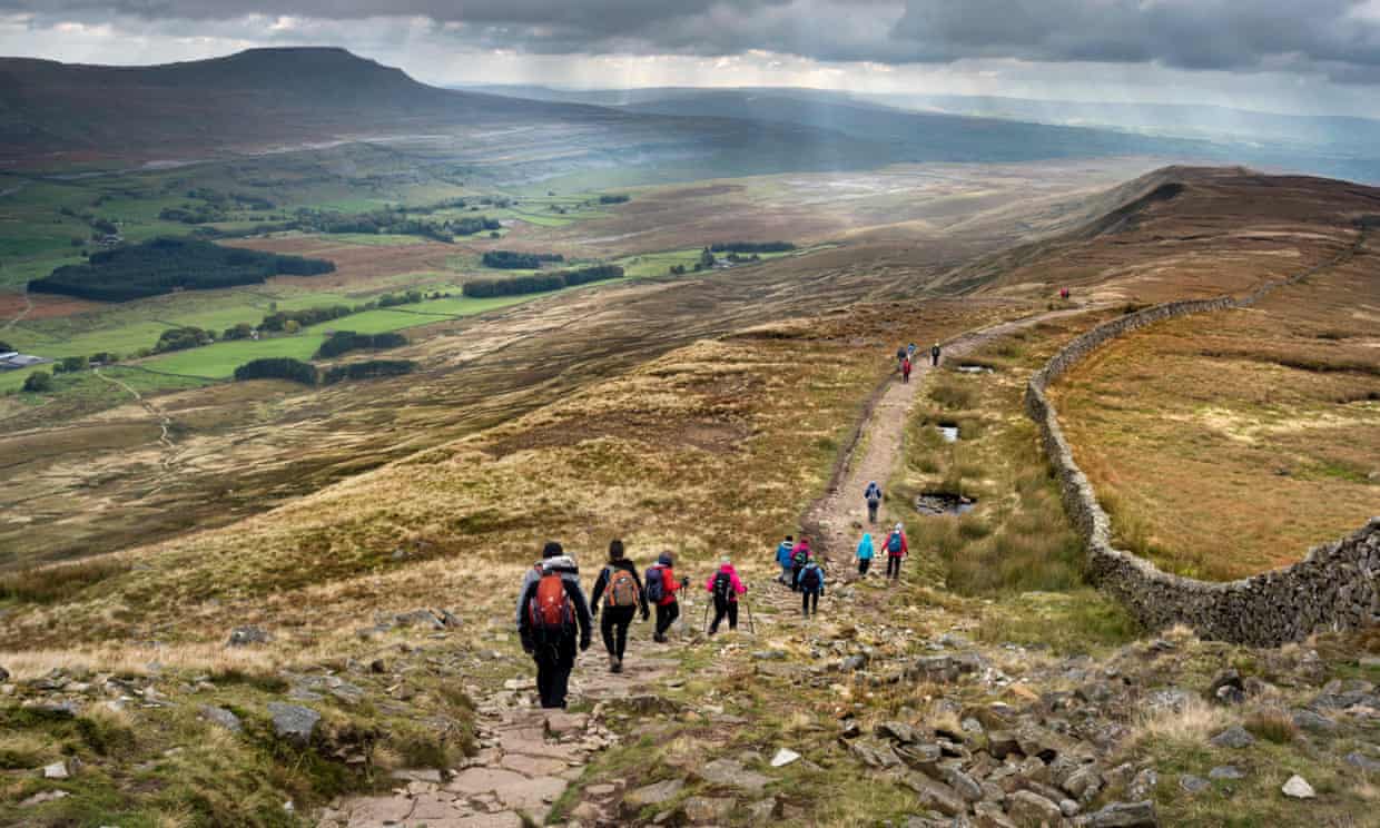 | "Questo fa parte della lunga tradizione inglese di recinzione: cogliere un bene comune e darlo ai ricchi e ai potenti". Passeggiatori nel parco nazionale dello Yorkshire Dales. Fotografia: Alamy |