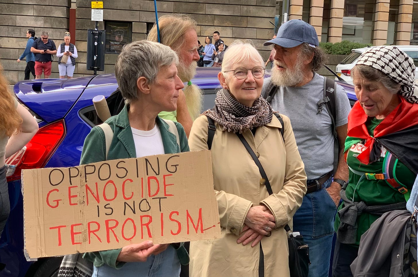 Craig Murray si è rivolto brevemente ai presenti. Ha detto che ieri alle 10:45 le donne sono state accusate di "atti vandalici" e ha pensato: "Bene, saranno presto liberate". Ma poi alle 15:00 sono state incriminate ai sensi dell'articolo 57 del Terrorism Act del 2000. Si è chiesto chi abbia telefonato per far cambiare l'accusa. Immagino siano i rappresentanti britannici dell'entità sionista, che sembrano avere il controllo della situazione qui.